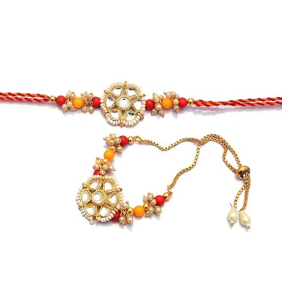 Handmade Stone KundanRakhiLumba Set to wish long life, health, wealth and prosperity for your brother.Gift your brother this wonderful and fabulous looking rakhi this Rakshabandhan and express your love and wishes in a unique way. Perfect gift for brother.