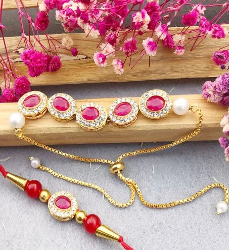 The intricate detailing and high-quality craftsmanship ensure these Rakhis stand out as exquisite pieces of jewelry. The adjustable fit offers comfort and versatility, allowing them to be worn beyond the festival. Show your love and appreciation for your bhaiya and bhabhi with this beautiful Rakhi combo, symbolizing the enduring bond you share.